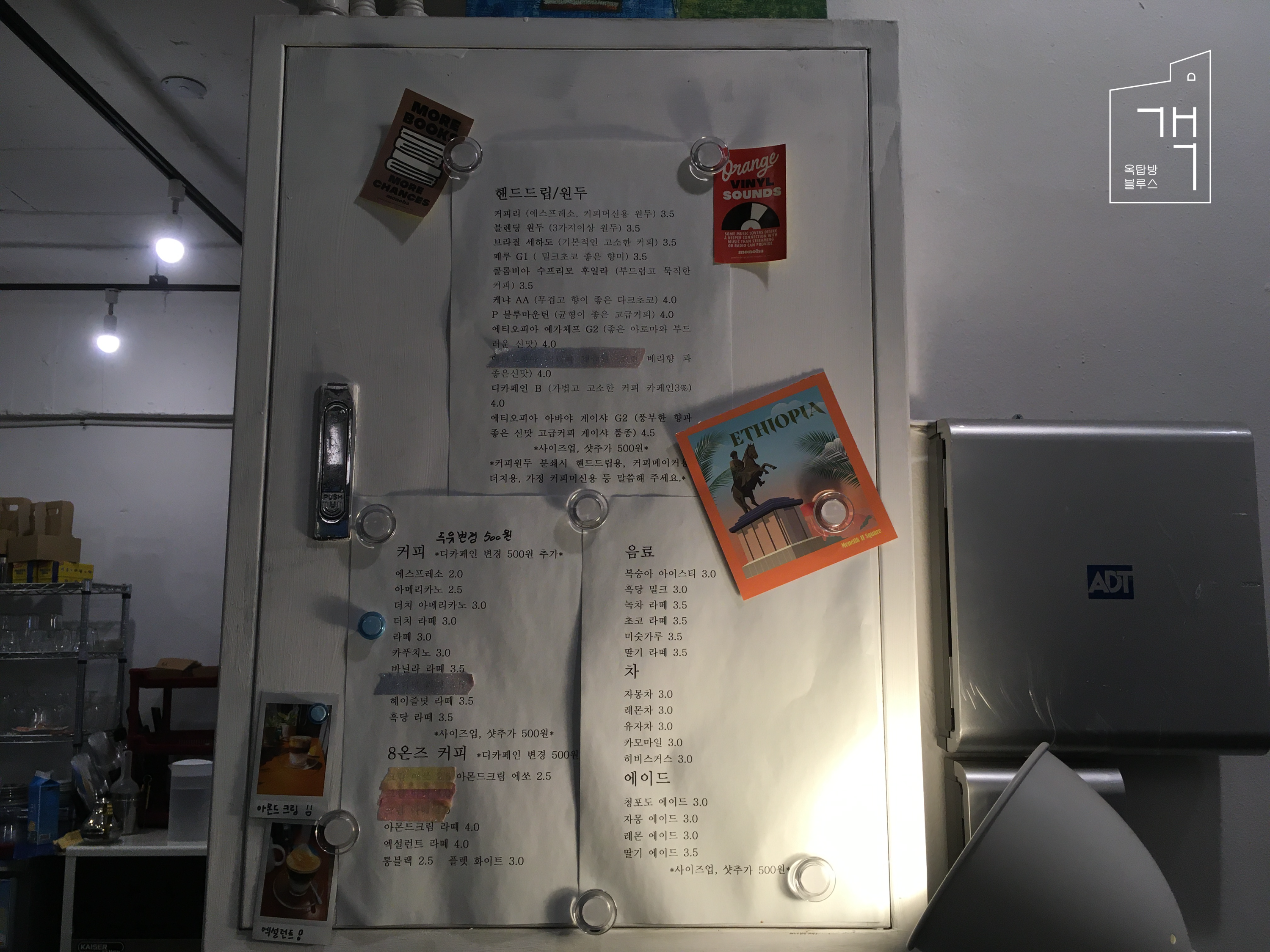 이번 휴일에도 바쁘게 돌아다닌 동거인과 나는, 지금은 외근으로만 가끔씩 들르는 그 동네를 갔다. 바로 귀가하기가 아쉬워 카페를 들렀다 가자는 같은 마음으로 찾아 들른 그 북변동의 카페를 들어간 것이다. 이 동네에 이렇게 다양한 원두를 취급하는 카페가 있다는 것을 처음 알게 된 것이다. 내가 했던 작업실과는 거리가 있지만.