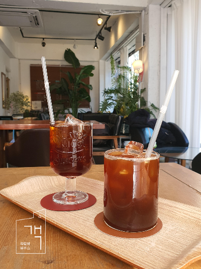 핸드드립 원두에는 아홉-열 가지 정도의 원두가 있다. 가장 위에 적힌 커피리 핸드드립을 주문했고, 아메리카노를 맛보지 않을 수 없으니 함께 주문했다. 오래 기다리지 않아 제조가 완료됐다 하여 가져왔다.